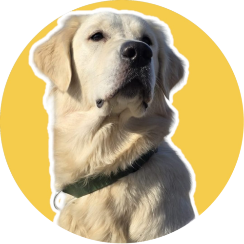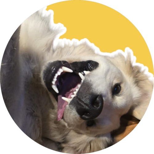 Boudine à l’air, couchée sur le dos, c’est comme ça qu’elle accueille les invité.e.s. Jabba, un an, Golden à poils ras (ou Goldador présumé – comprenez un métissage Golden et Labrador) est d’une douceur exquise, sauf quand il est question de creuser dans le gazon tout frais de papa et maman ou d’arracher un savoureux nonosse de la gueule de son frangin. Elle kiffe l’activité déchiquetage de courrier et peinture sur vêtements avec les pattes couleur boue.